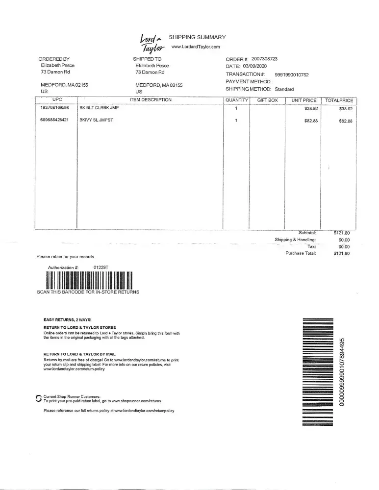 Lord & Taylor Return