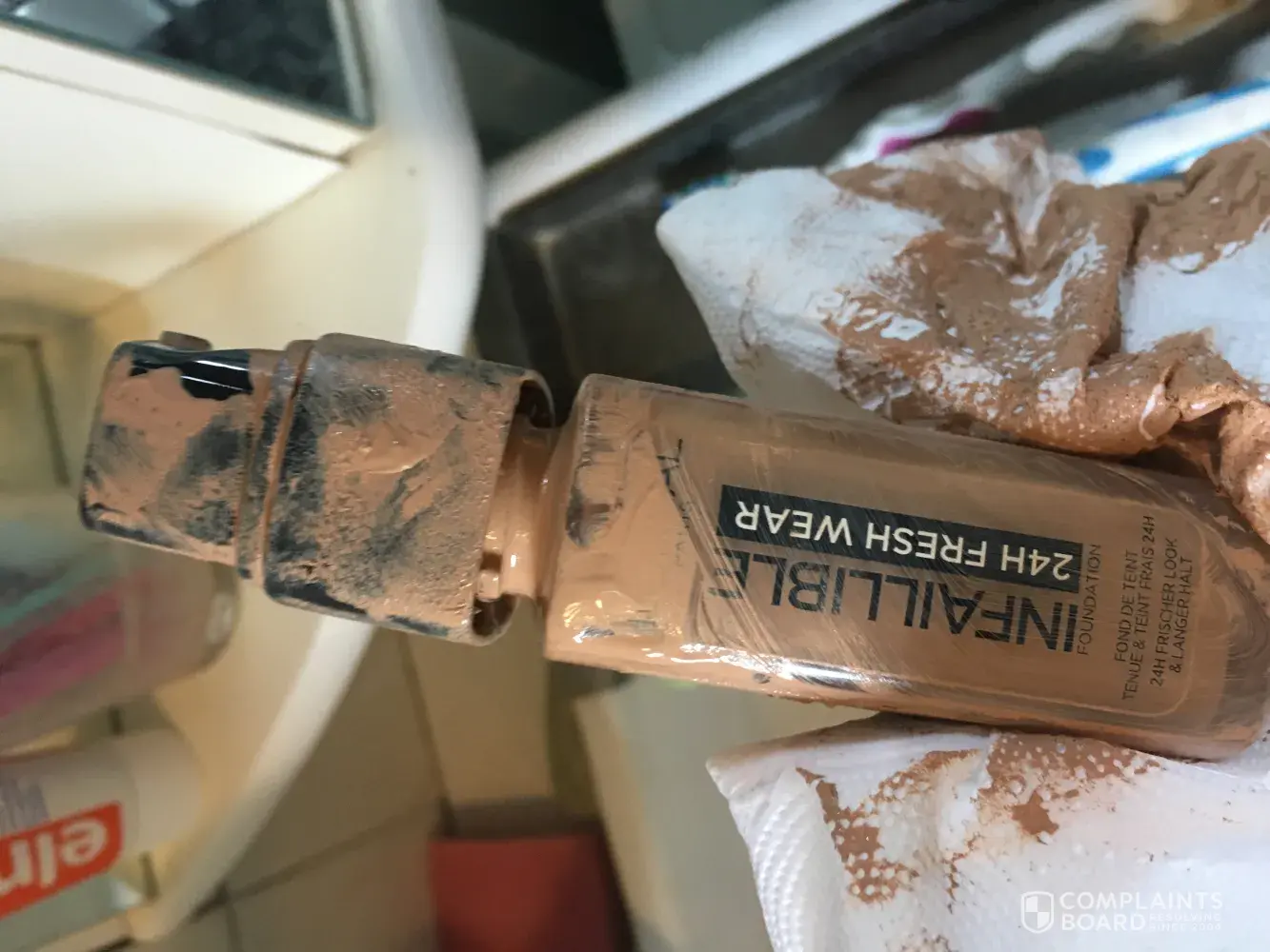 I was traveling with my newly purchased l'oreal foundation, and I found out that the product was broken when I arrived and unpacked. It was new, and I didn't drop or anything, it ruined all my other products that were in the bag. Luckily the bag was thick enough, So it didn't ruin clothes and bags, I still am having difficult time removing the stain, and I had to throw away the new product. It never happened with other products, I have been traveling and using the same cosmetic-bag for years.