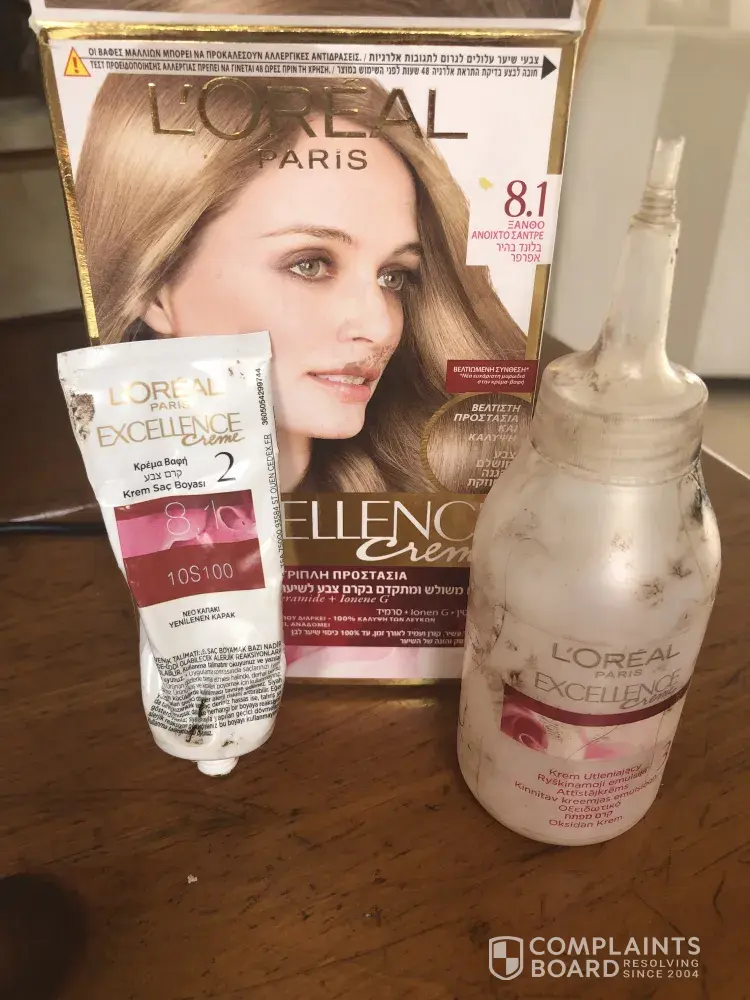 I have been using the above hair dye for the past few years with really good results, but the last time I dyed my which was on the 12th July 2019 the results came out quite wrong, I noticed to start with that the gloves in the box were really tiny, there was no conditioner in the box, and then when I put the product onto my hair my scalp starting really burning which it never normally does, I was about to wash it out straight away when the burning stopped, I then left the hair dye on my hair and after the alloted time washed it out and my hair colour came out a very dark brown instead of the usual ash blond colour, and my hair felt like it had been burnt, the condition that my hair has been left in is awful and this past week I have spent a small fortune on products trying to put some moisture back into my hair, we had visitors at the time so I reached out to L'oreal for some help in fixing my hair, its a shame that you don't actually have consultants that people can talk to that can help fix things when they go so horribly wrong, so I have been walking around with horrible dark brown hair for the past eight days with no help from L'oreal or a way to put things right, after contacting L'oreal with all of the details of batch number etc, this is the email I recieved this morning.