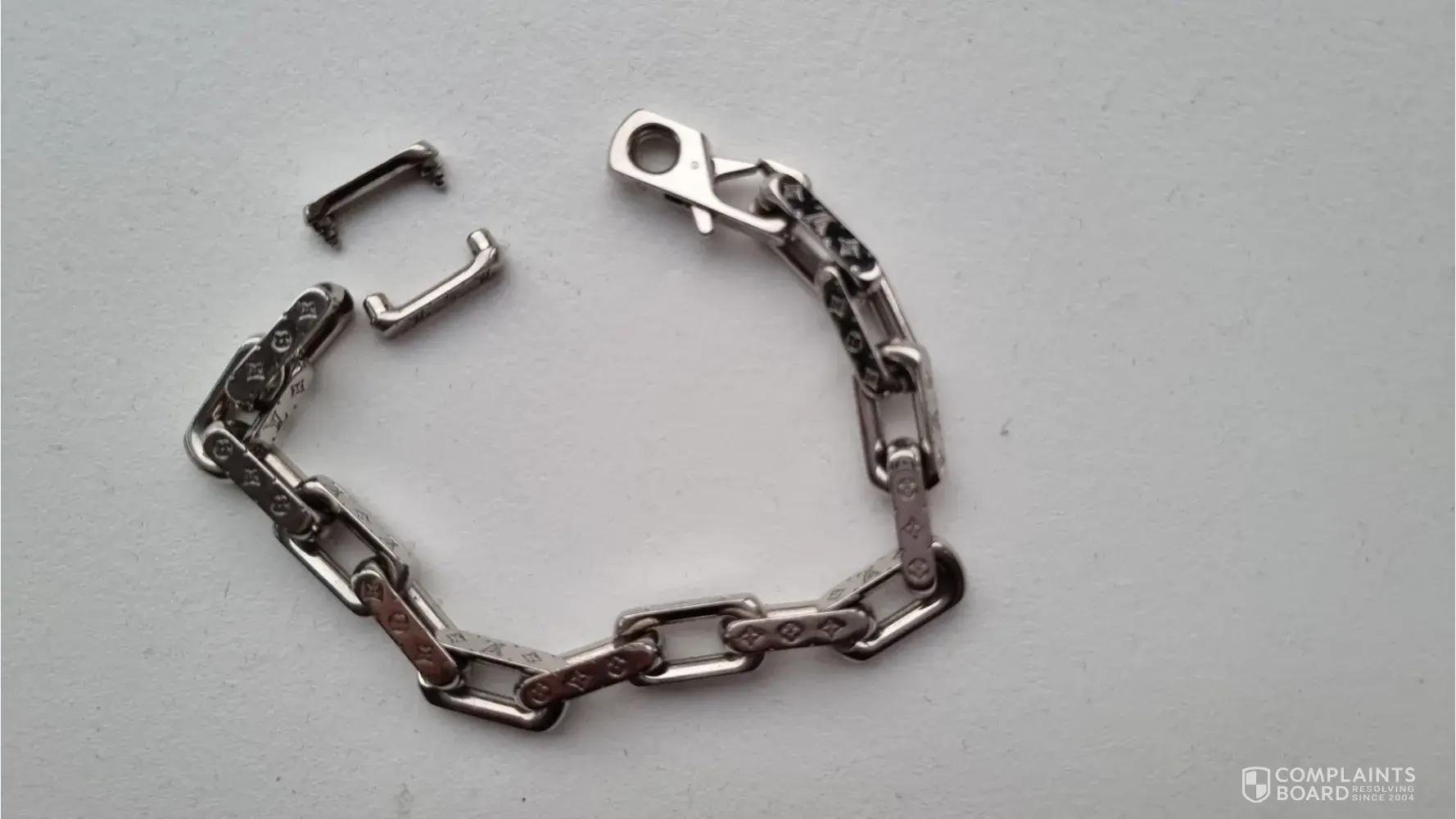 I'm writing in regards to the quality issues I've experienced with LV jewellery piece. Last year, for my 30th Birthday my partner got me a LV chain bracelet. On the 18th of February 2022 I wore it for the private viewing of the exhibition opening ceremony at Herbert Art Gallery & Museum. During the event, I've noticed that my bracelet is missing, and alerted the staff. The bracelet was eventually found, the lock was still attached to the chain, but the chain piece itself was open. I was very dissapointed that this has happened, as I didn't expect such issue from Louis Vuitton jewelry piece. I've pressed it back together, and it seemed to be holding again. The next day, when I was getting the train back home from the event, the bracelet fell again, on the platform, and I was only able to pick up chai links that I could see, the rest of them was not safe to recover, as it must've been on the rails, and the platform was overcrowded, due to the train cancellations during the storm Eunice. I had no choice but to take the train, as I was risking to get stuck in another city. The whole experience, and the fact that I've lost the bracelet from my partner, which I was hoping to keep forever, and it was a tradition to celebrate events with LV presents to each other - is deeply upsetting.