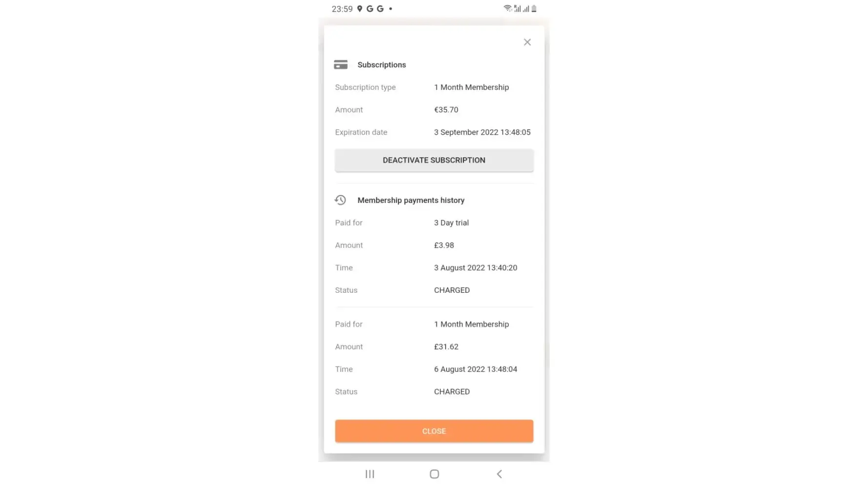 I had not given permission to pay £22.99 for the premium and it had already been automatically taken out of my account at approximately 4:40 pm