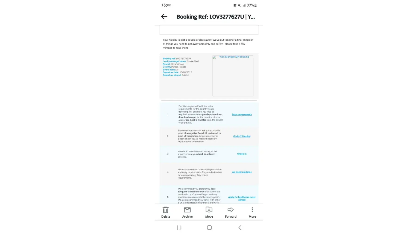 Booked holiday 27/06/2024. with you LOV6733898u, holiday did not comence was not booked, paid in full, having