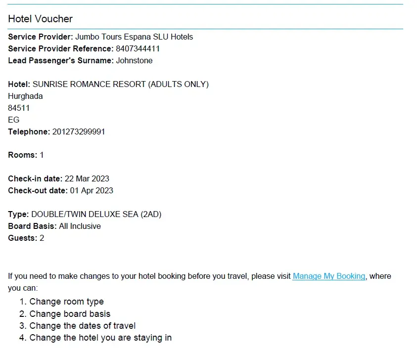 The reservation was handled subsequently by loveholidays (booking ref: #lov-663261u) and I received booking confirmation letter.