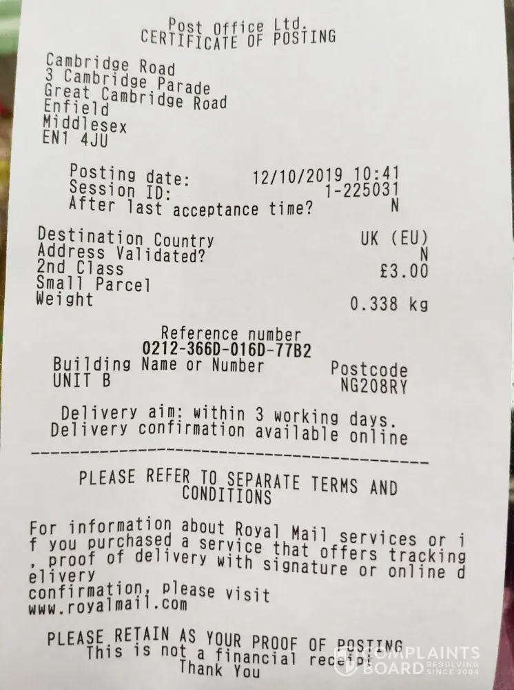 Desired outcome: Refund and postage costs for return