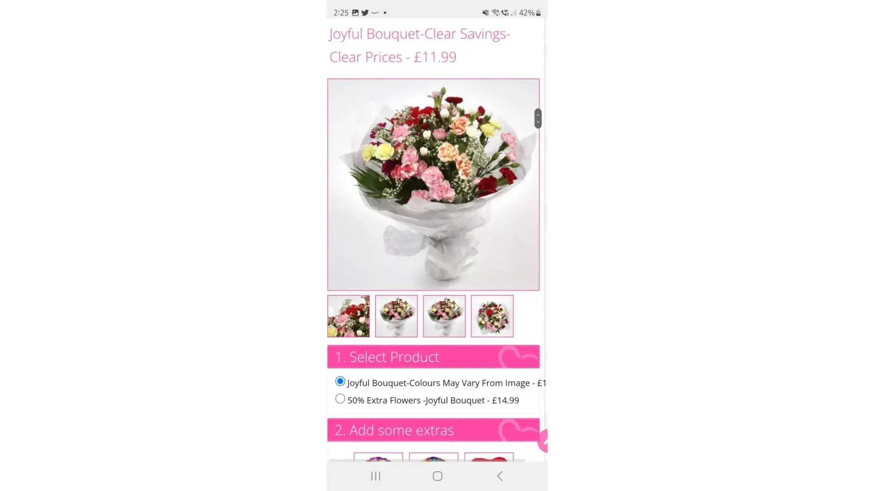 Lovely flora world I ordered these.. And paid for 50% extra more flowers and got this aldi looking things absolutely shocking.. I have sent 2 photos over, one is what they advertised what I thought I ordered.. And the other is what I received its disgusting and they just won't get back to me, they have so many bad views on facebook but I never looked : (wish I did now