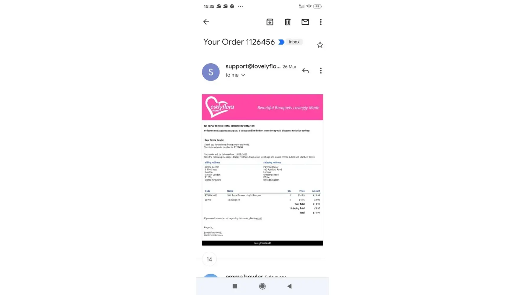 I sent some flowers to my cousin to cheer her up. I accidentally added Close on the end of the address instead of Gardens, I contacted lovelyfloraworld and admitted my error. After a few emails, they very kindly agreed to send a fresh bunch of flowers.