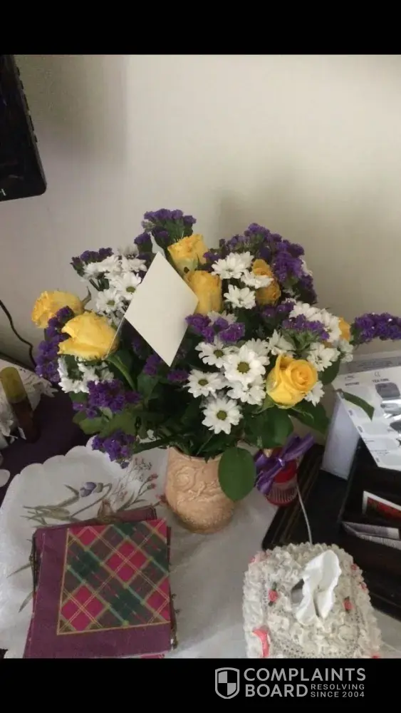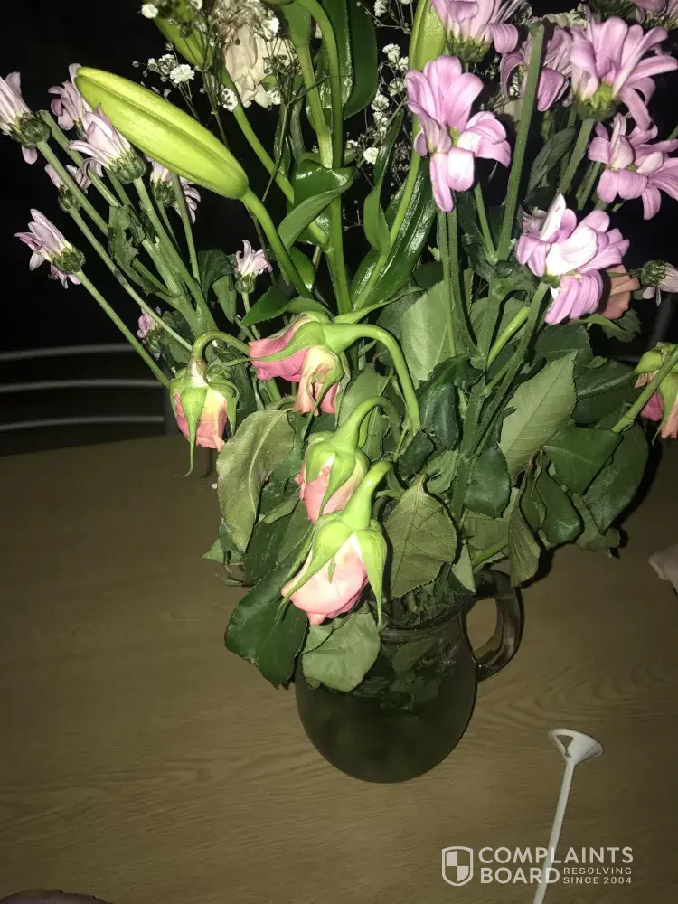 I a complaining because I am fuming, I ordered a set of these flowers from the companie and they were for my nan's birthday, not only did they turn up 3 days late, they were dead, hardly any flowers and no wrapping on the flowers, my nan was devastated when they turned up and I am embarrassed, how a company can send them out looking like this is a disgrace.