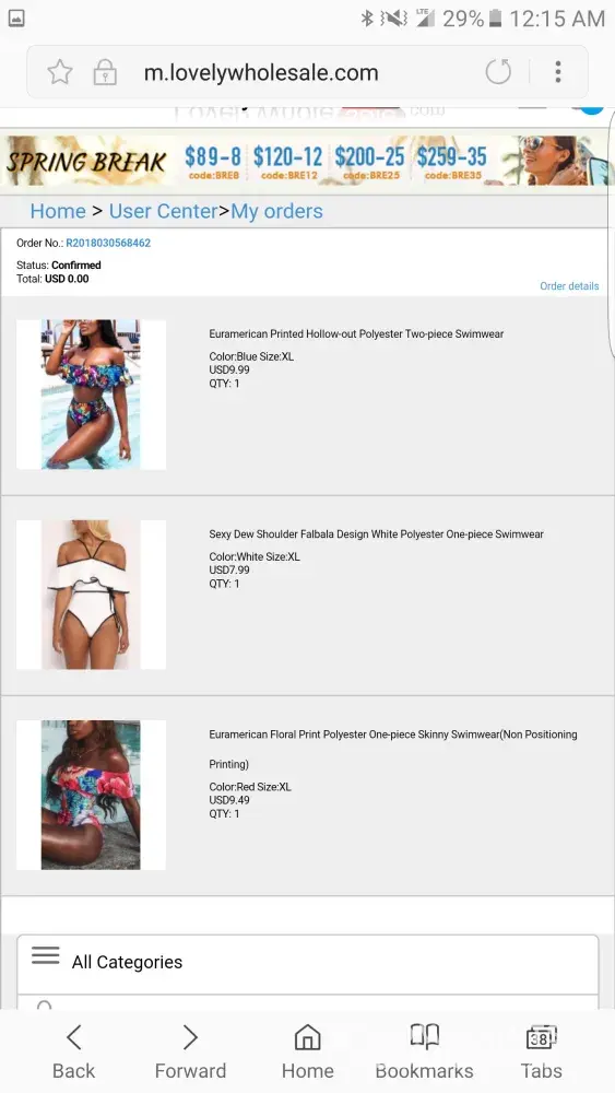 (1) swimsuit not sent!