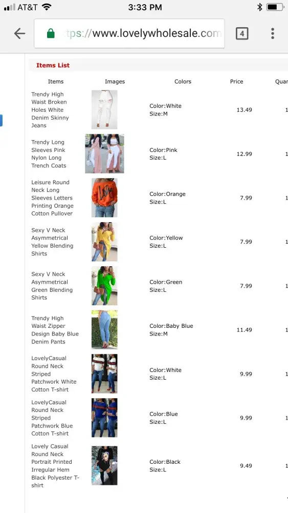 I placed a order 04-04-18 after weeks of me trying to contact your company trying to get a refund. I just received my order today. This is not what I ordered and its not my size. I am going to send the items back and would love if you do what I have been asking and give me my refund. I also have a order form from lovelywholesale that shows you over charged me for these items. The website will not let me submite a ticket and you are not returning my emails. I don't know what kinda website this is but if I don't hear from you soon everyone will know this is some fake whole [censored].