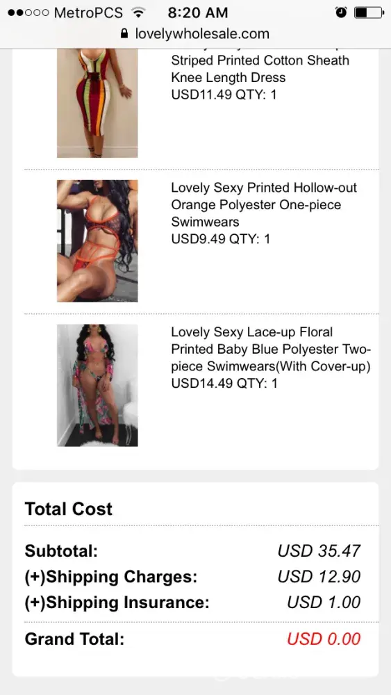 I purchased three items from the loveleywholesale site, which are two bikin suits and one dress. I have received an email about a payment when it was paid in full and only has two items not the three i've purchased. My order number is o2018031974186 and also took screen shots of item and the total that was paid in full. Thank you and have a great day