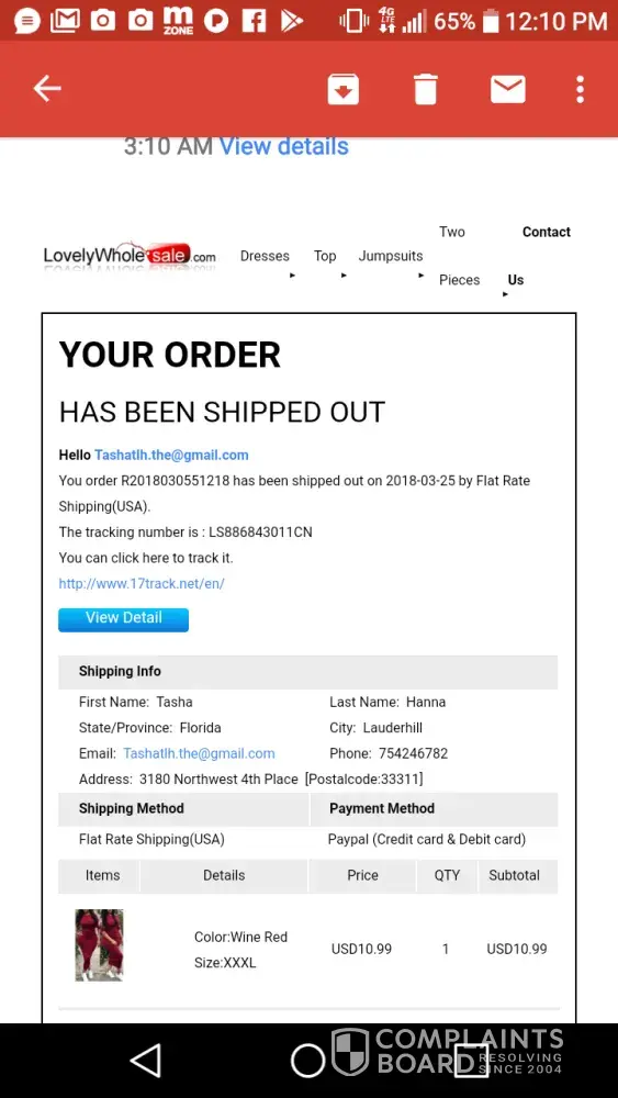Hello, my name is tina floyd. I've been doing business with this company for a while now. I placed an order for two dresses on 3-29-18 and I received an email stating that the items were shipped out on 4-01.