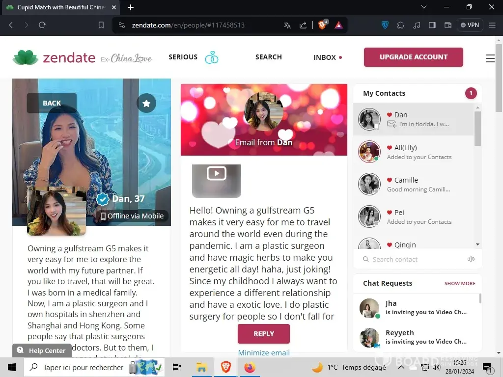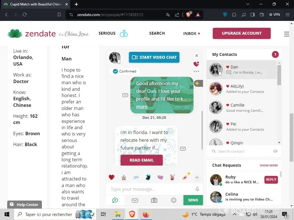 I request the assistance from Loveme.com regarding one profile. I was in contact with one of their profile Dan Yan ID 213463. On her profile she claims to be a plastic surgeon in Shanghai from China. She contacted me at first the 15 Dec 2023. The 29 Dec she told me " I work as a surgeon in a hospital in the Orlando area in USA. And yes, I do have a house in...