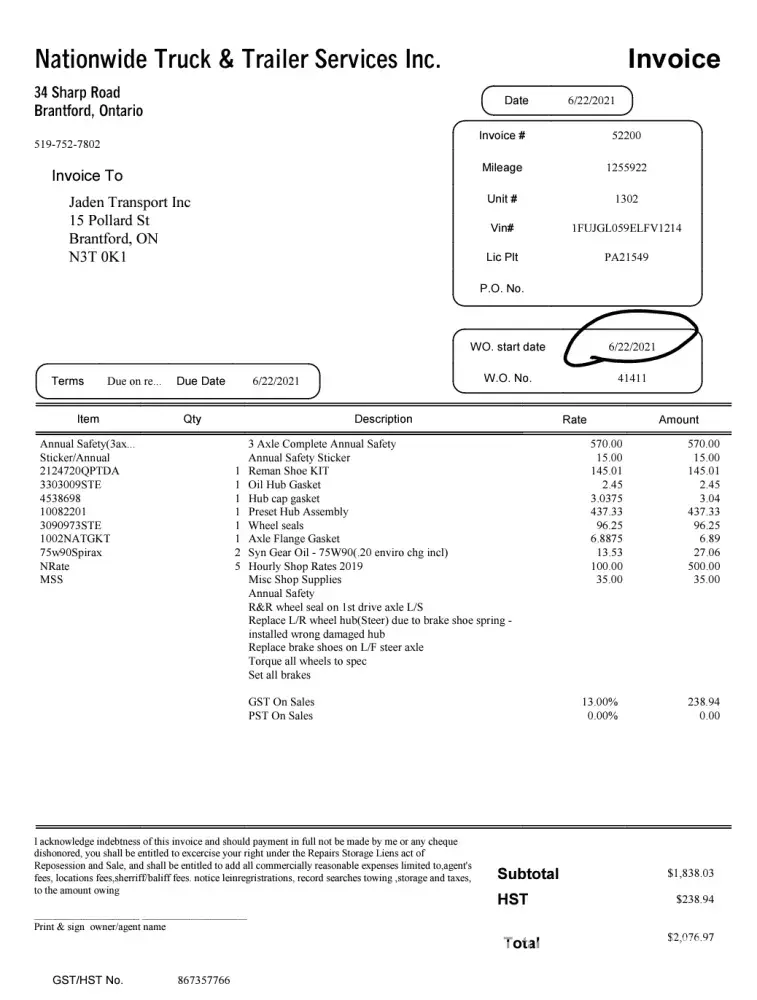 We get Wheel Hub seal Repaired at one of your Location in Michigan on April 18, 2021. Still under 90 days warranty we get Re do this job on our Local shop in Canada jun 22, 2021. Because there was no choice to move your Location back 2-3 hours Drive.