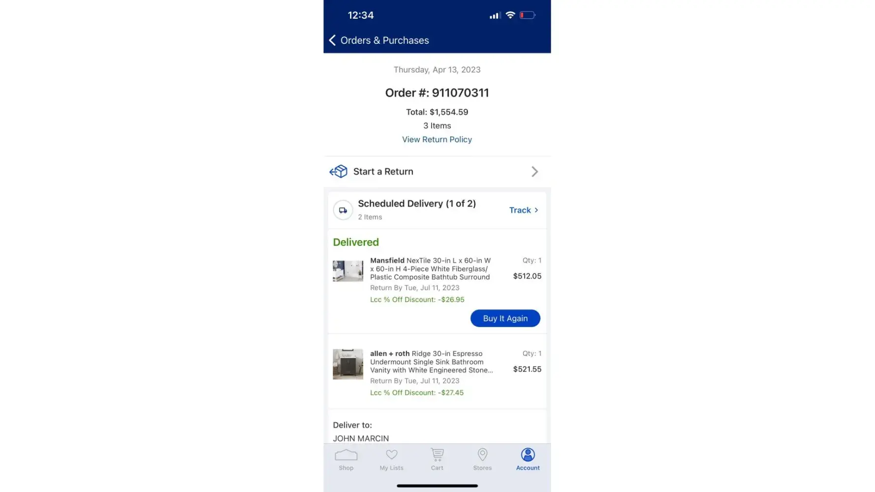 Read full complaintOrder # [protected] - delivery by Lowe's Mount Vernon