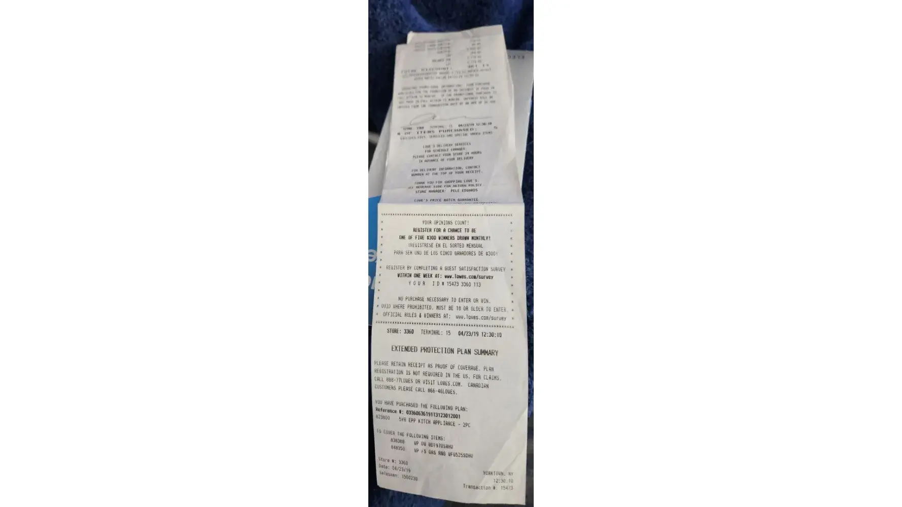In July 2020 my wife and I purchased a whirlpool washer and dryer. In addition, we purchased the 3-year protection plus plan. Sales rep did not give us a warranty brochure saying everything was in the system. We experienced problems in September of 2021 and continue to have issues. When we called the local store in September of 2021, they said they could not find paperwork since it has been over a year. Referred us to Customer Service and bounced around for hours. They could not find our purchase, nor could they find anything regarding the protection plus plan. Subsequently in September of 2022 I paid ~$200 out of pocket to a local repairman to try to resolve some of the issues. Unfortunately, I am still having issues with washer. All of sudden on January 22nd I get an email from Lowes advising that my 3-year protection plan is about to expire in July of this year, and I can purchase an extension. I contacted customer service and they could not help me. Unfortunately, I cannot find the original receipt of my purchase. Ownership seems to be falling completely on me even though I get an email from Lowe's about my warranty.