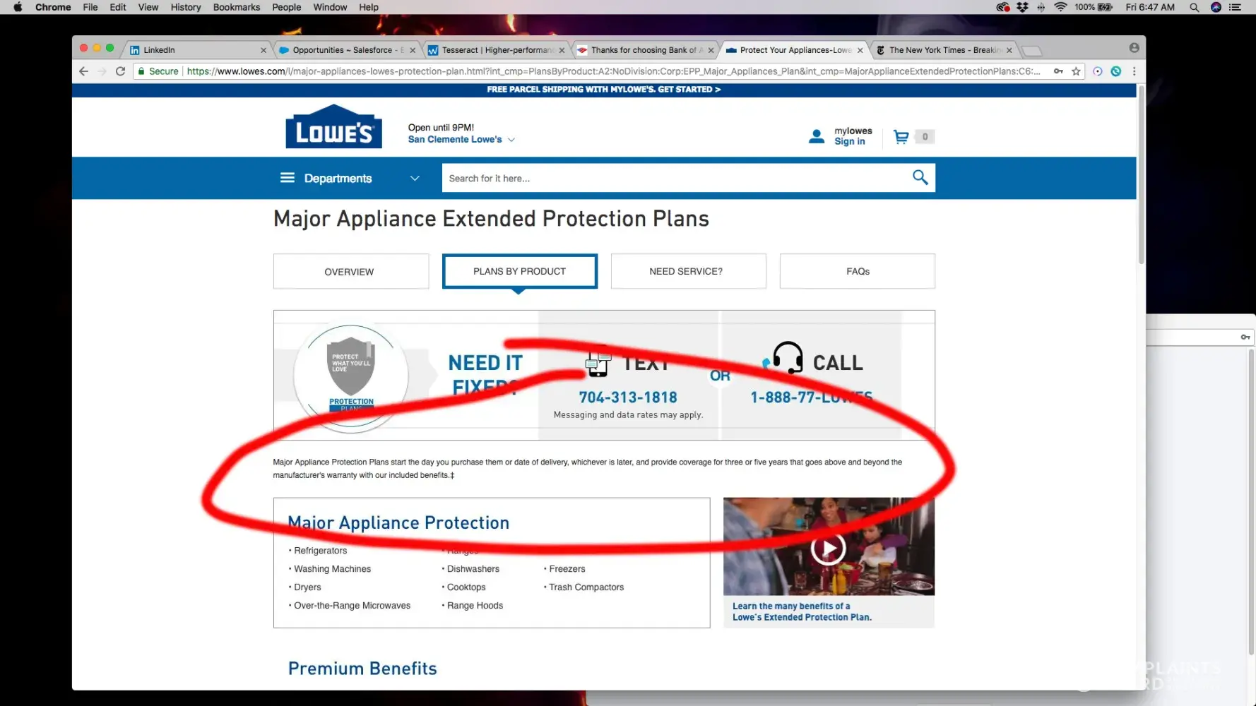Lowe's has been horrible on follow up, horrendous with customer service and now they are screwing me out of my warranty with their 'interpretation' of plain english as defined by the fine print of their T&C's. Despicable.