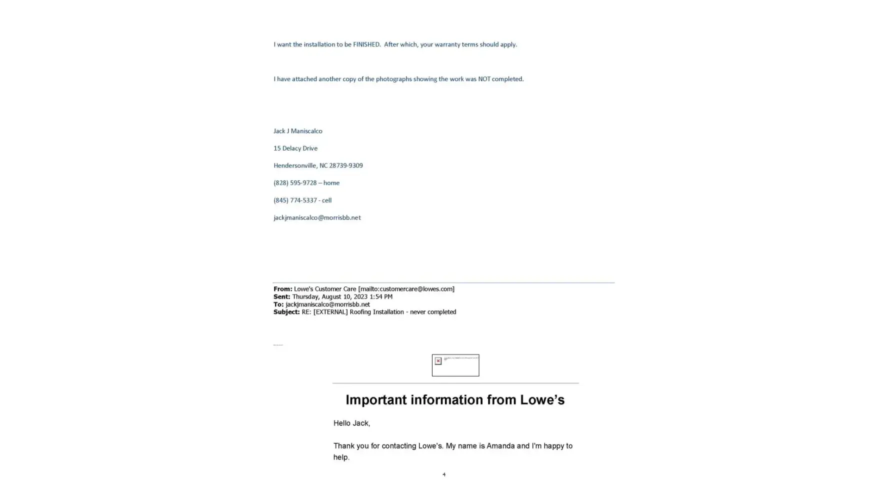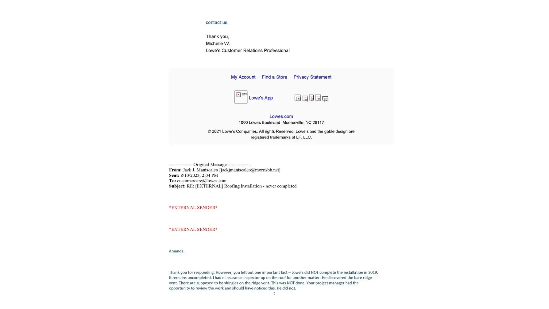 Desired outcome: REPLACEMENT LOWES Corporate People Helped me [protected]