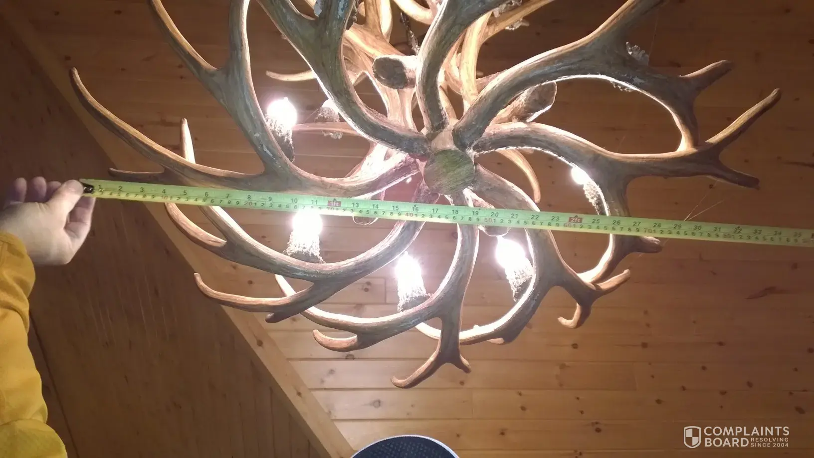 We ordered a 48" chandelier and were provided with a 36" chandelier. This is a cottage and a construction site. The electricians went ahead and installed the smaller antler chandelier when they were there and the scaffolding was available. When we arrived at the site we noticed the mistake so I contacted Lowes Canada customer service who advised that we must provide pictures with a measuring tape in order to be credited the difference in price.