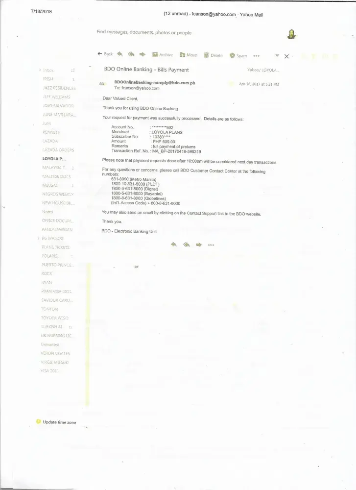 Attached herewith please find proofs of payments to my loyola plans premiums which has been due 2015 yet.