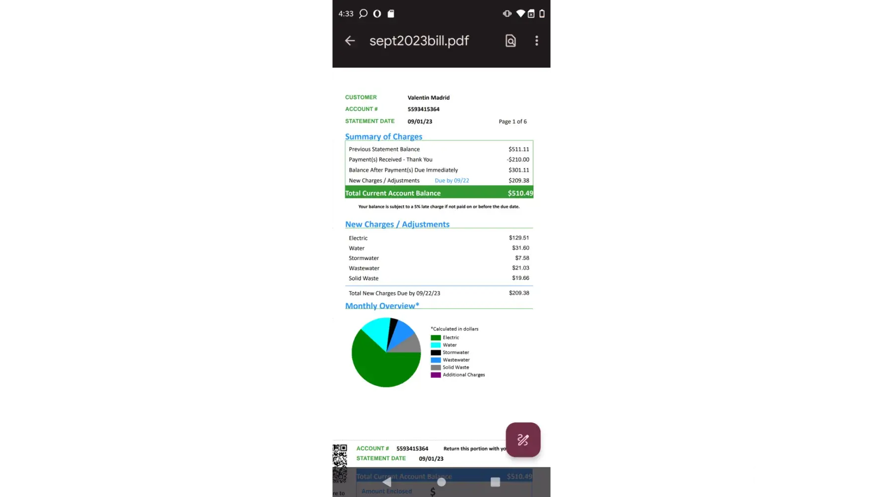 1) "Summary of Charges" section of 7.28.21 statement (on page 1 of 5), acknowledges $177.92 payment received for previous billing period, confirms a -0- balance brought forward 2) "New Charges / Adjustments" section (on page 1 of 5) statement details "Total new charges due by 8.18.21 of $324.20. browsing through the charge details on the rest of the bell, this amount = the detail from the supporting pages of the bill. 3) Despite the statement detail supporting the new charge of $324.20 and a -0- balance from the previous billing period, Lubbock Power Light and Water, LPandL, City of Lubbock Utilities billed $518.48. LPL should refund the $194.28 over-charge on this bill, plus any late charges on subsequent bills that were based on using this amount to calculate the late charges. The account is current (-0- balance) as of this date 11.30.21. I have paid all the overcharges.