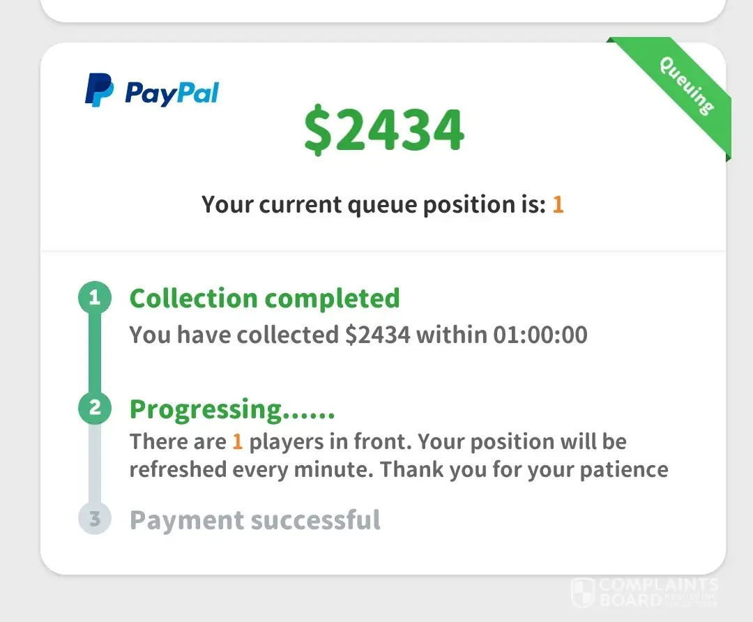 I am having doubts about ever receiving any money from them. I have spent hours upon hours spinning to win as well as looking at numerous ads to accumulate money for payout to my Cash app account. Then I find out that I’m behind thousands of people before I can collect my winnings. When they say 2-3 business days then that’s when they should pay and not have you in a queue behind a multitude of people. Either you have the money or not!