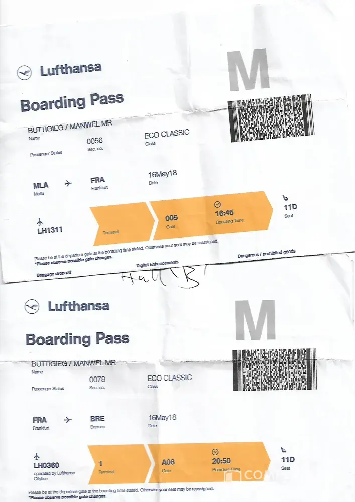 Hi I am Manwel Buttigieg from Malta and I am clients with Lufthansa airline for more than 12 years using Lufthansa airline, I am working offshore in the Windfarms industery In the last 3years I see Lufthansa airline go down, So I came for my compliance on the 16 of May I have flights from Malta Frankfurt via Bremen, ( No LH 1311, ) second flights from Frankfurt via Bremen No ( LH0360 ) the flight was 1hour delayed plus waiting for 45 mints in the airport there have problems about the computer to open the doors