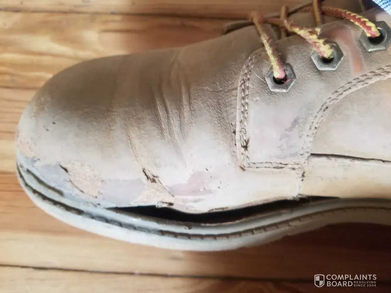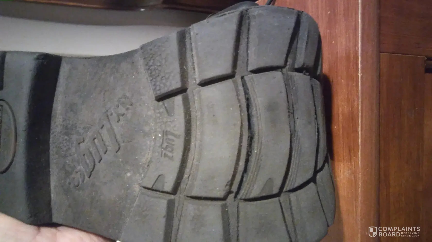 Yes my complaint is about lugz work boots size 9. After only wearing boots 4 times both left and right boot souls have come apart! This happened while on a ladder coming down off a roof. Lucky no injuries accurred. We loved the look and feel of your boots but what happened to the high quality of your product? I did not save receipt from purchase but believe I am owed a replacement pair? I am sending pics as you will see the boots are barely been used. You also can see were we tried to repair the problems but it didn't work. So I am asking you to replace these.. Thank you, tamican. [protected]@gmail.com