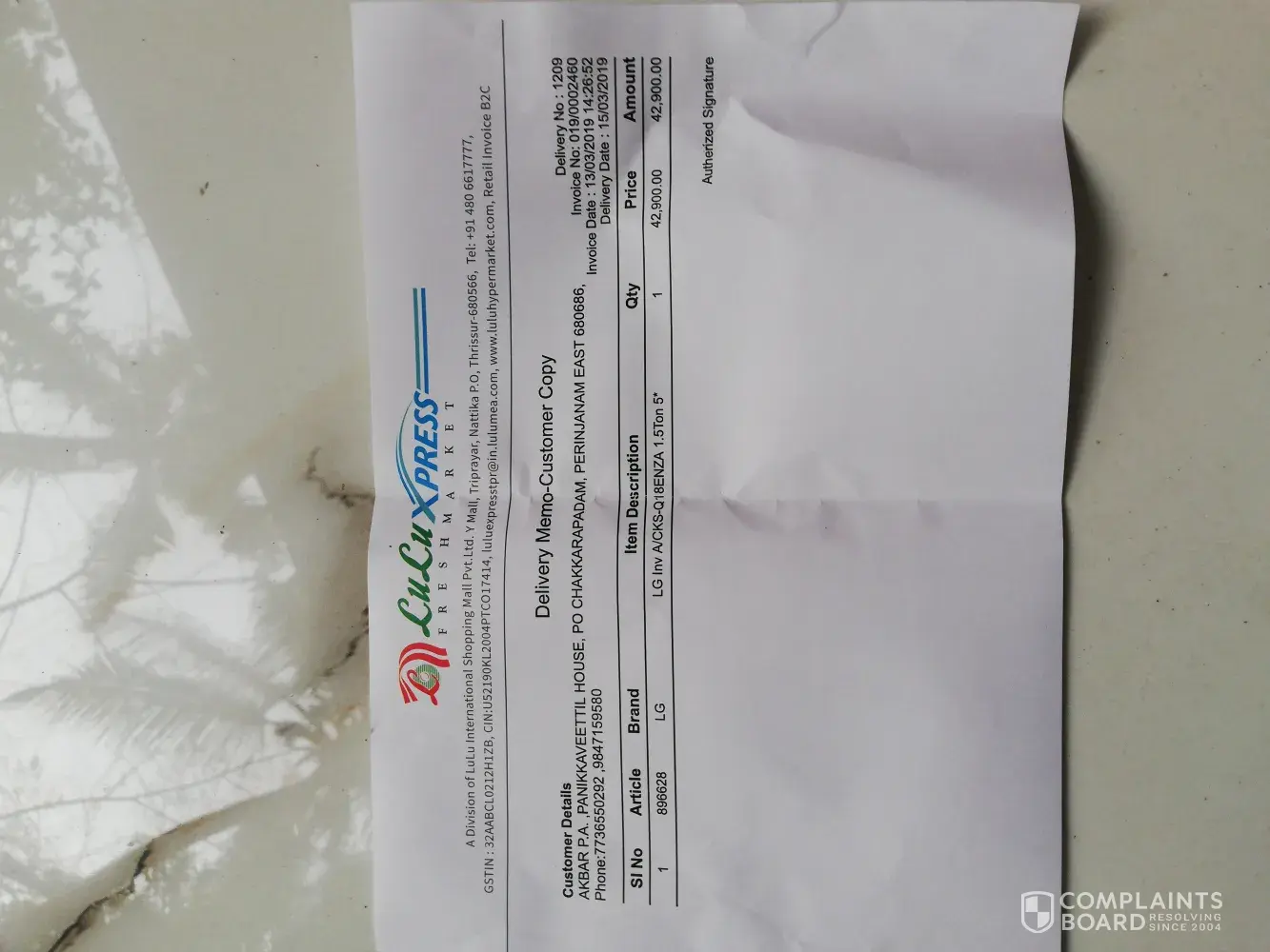 Hi, i am akhil a resident of sharjah. I am a regular customers of lulu for morethan 10yrs but this is the first time i get bills for the item i have not brought. I have checked my items couple of times and i could not see the item which is billed on the invoice.