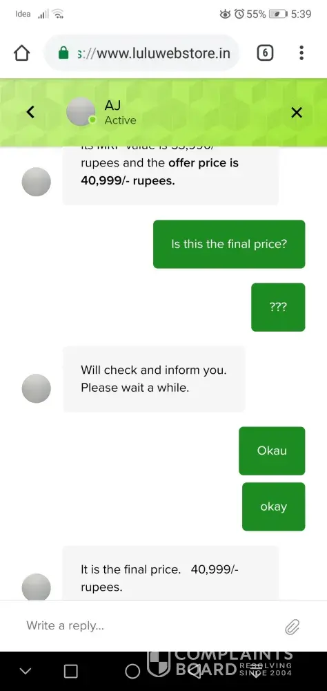I bought a preethy's mixi on 17.03.2019. I just grinded coconut in it. But it didn't work well. So I came on 23.03.19 to exchange it. Then they said that they couldn't take it back. There is the provision to return it within 7 days. But they don't agreed with us. This was the most poor service I ever got experienced. When they give us the product, they are not checking weather there is any complaint in it. This will be my first and last purchase for home appliances from lulu. Pos/receipt: 44/49203 dated 17.03.2019