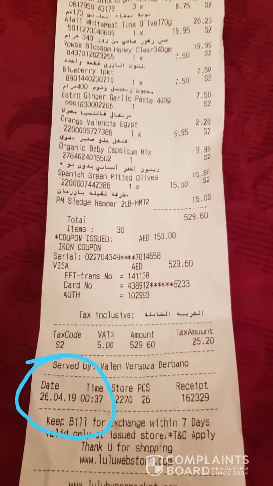 Another issue : in the advertisement it is mentioned egg price is 0.890 in place of 1.195 however in the bill they charged 1.195. this is not about money or item how many such item we should check the price if u charge incorrectly.my bill that day was 53 kwd.