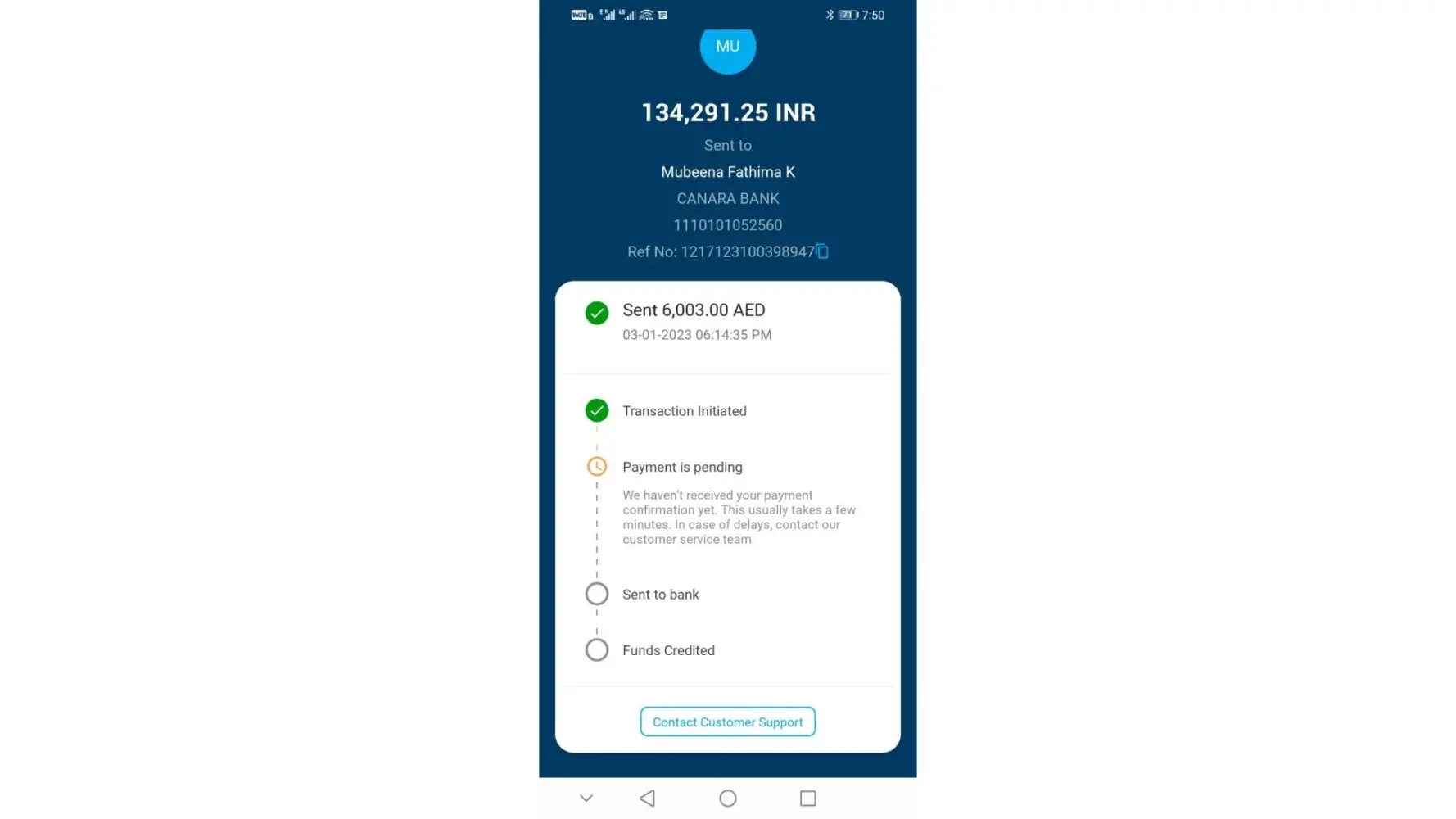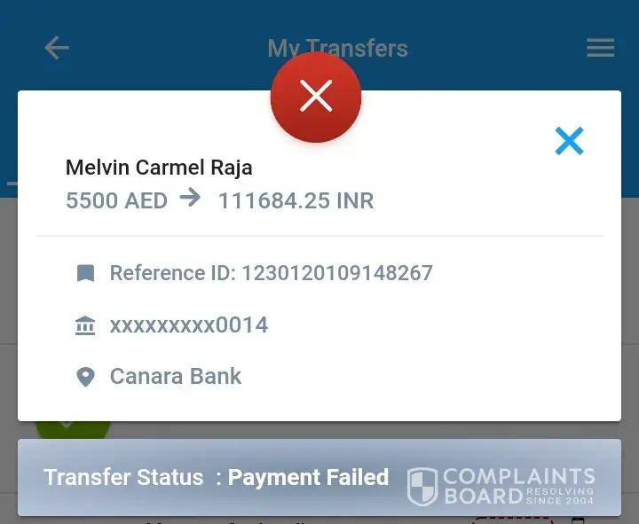 I’m disappointed I’ve sent money on 3rd January to my Wife Indian Account in Canara Bank and I haven’t received yet until now, I remember when I called Canara Bank Nagercoil Branch they said there is no any issues in my wife's account. But I didn't get back in my UAE Account or my Indian account, seems like it is vanished.