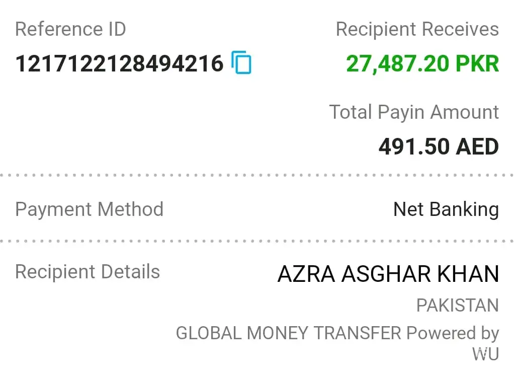 Money not received by global money transfer powered by w u in my country pakistan
