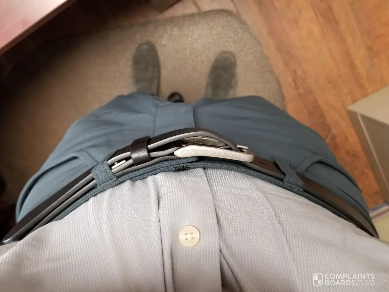 I purchased a pair of your ABC dress pants a while ago (month or so) and finally just realized that the belt loops in the front of the pants don't like you properly! I fear I was sold a defective type of clothing and paying as much as I paid for them I am severely disappointed. The belt loop on the left side is very close to the button and not even close to inline with how far the loop on the right side is.