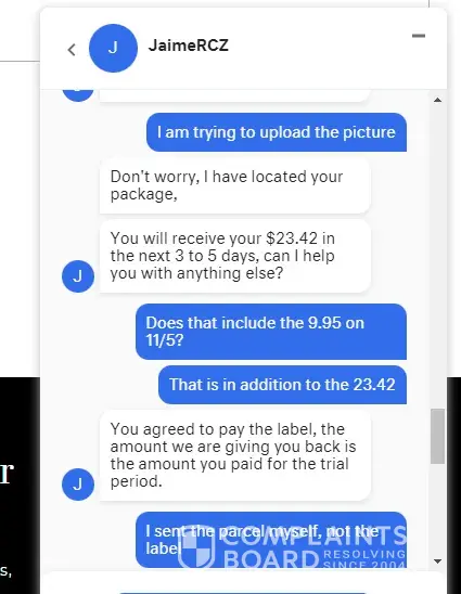 Read full complaintI called/emailed and ask for a shipping label and they refuse to email me back a shipping label.