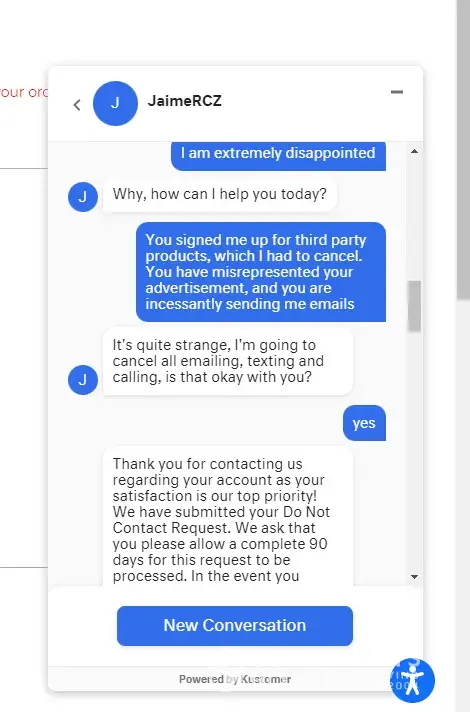 Desired outcome: Cancel any further orders, cancel my account refund 9.95