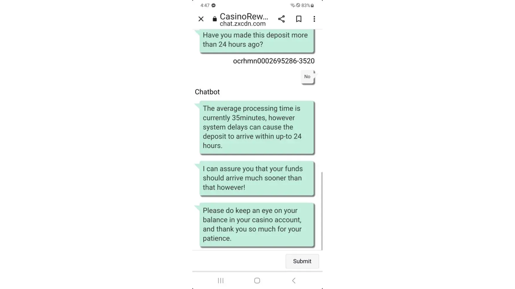 I contacted the customer service they told me there is a technical issue and our technician working on it and asked to contact later. I whole 24 hours passed and I contacted them again still same excuse our system is experiencing technical issues and our technician r working on it I don’t know if what’s going on coz for a casino to fix a technical issue should not be such a big deal and also u can’t do nothing about it if they scam you and not pay ur winnings