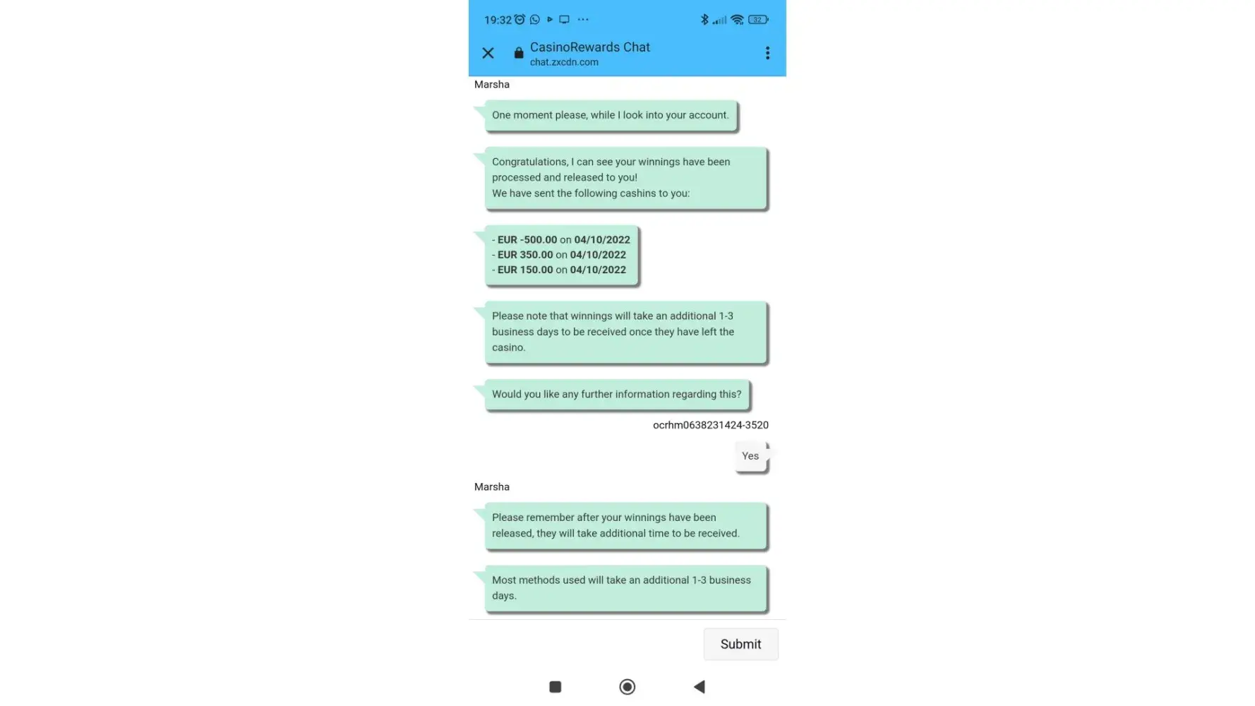 i complained to the gaming authority Monday and there getting my money for me by Sept 20th
