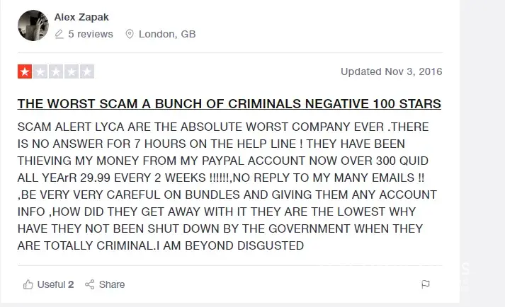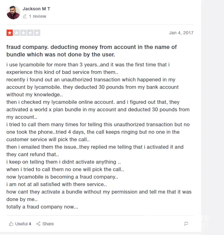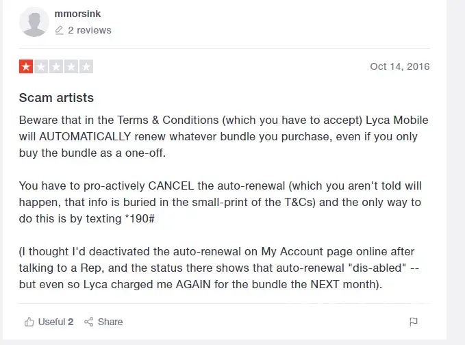 LycaMobile earns a 1.6-star rating from 1 reviews and 80 complaints, showing that the majority of customers are dissatisfied with service.