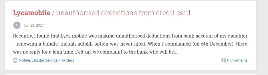 I stopped using lyca service back in 2017 and reported that i'm not using service. howerver noticed that lyca mobile is still charging my credit card till 2019 and again found out the charges and reported again on on 2019. the customer service mentioned they will stop the charges however...