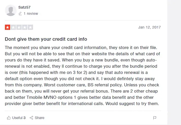 Reason to change of supplier from Lycamobile is their failure to continue automatic top up without warning. Only found out when tried to make a phone call. Manual top up showed success on screen, but money not added to account.