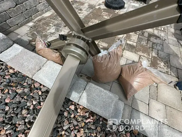 However, upon receiving the product and attempting to set it up, it became evident that there were crucial elements missing from our understanding. Despite assurances from Chris during the sales process, the umbrella stand failed to stay upright when the umbrella was open, posing a significant risk to property and personal safety. Despite our attempts to stabilize it with additional weight, including 200 lbs of sand, the stand remained unstable and ultimately collapsed, causing injury to one of us.