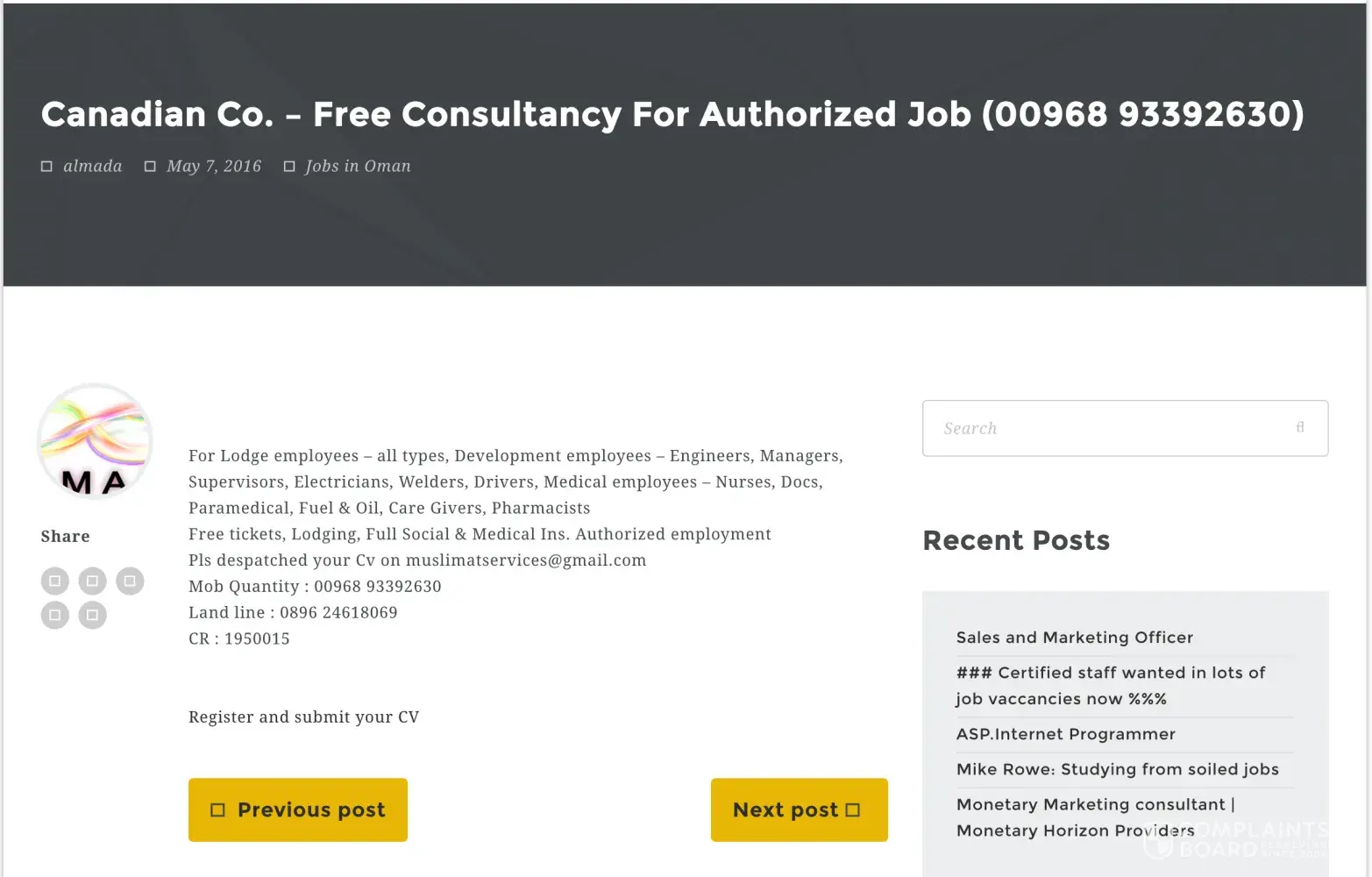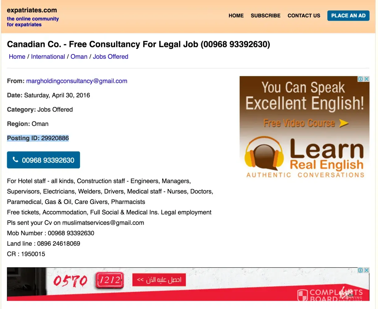 BEWARE THIS EXTENSION OF THE MARGHOLDINGS / M98 MANPOWER ADVANCE FEE IMMIGRATION FRAUD NOW WORKING FROM OMAN