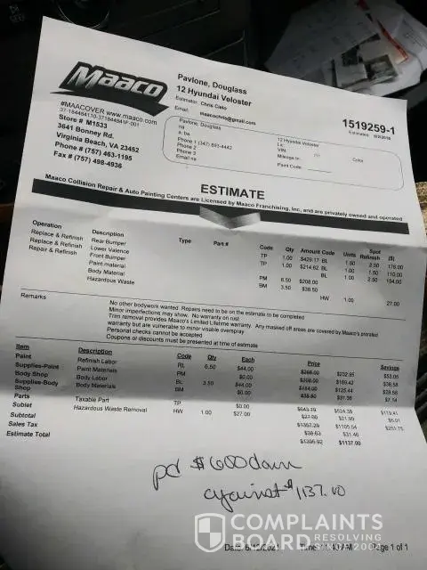To illustrate this: I paid the original price more than $2500 plus additional$ 500 for their first mistake, I removed my car totally dissatisfied and they did not answer my call to fix this issue at all. they did not care about me as a customer neither the fact that they represent a Maaco company. I have to take my car to repair the bad job done in another place because it looks disgusting. please advice on what to do.