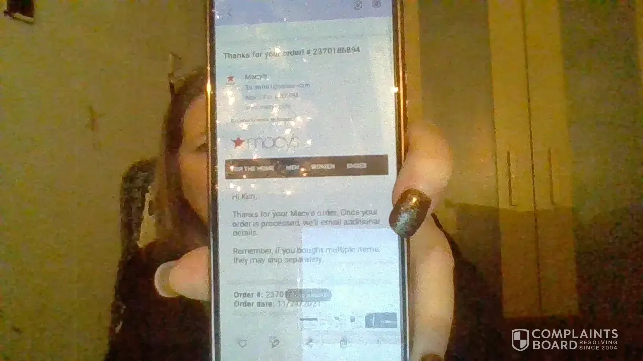 Macy's Order #[protected]