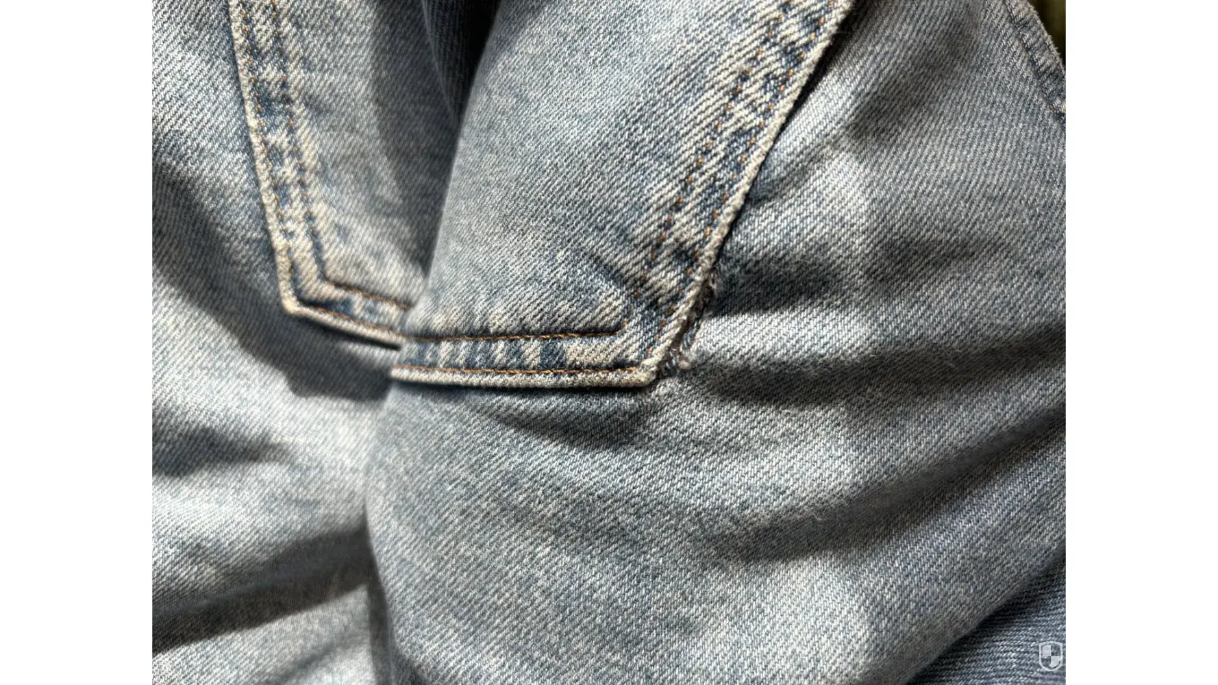 Denim ripped perfectly along a seam without any signs of other wear & tear