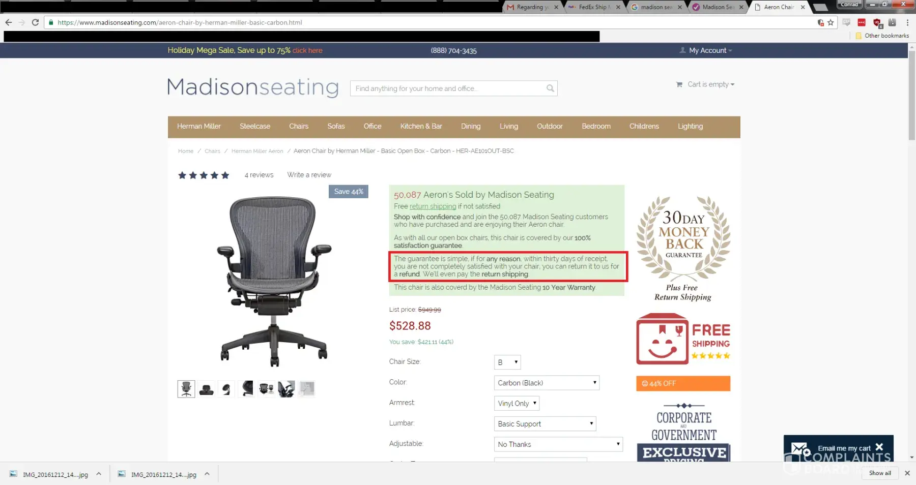 After doing some research, I found out that Madisonseating has a history of fraud and even got sued by Herman Miller for it. So, take my advice and avoid these guys like the plague. Spread the word and save yourself the headache.