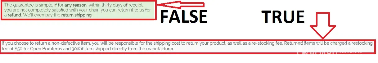 Misleading "No Hassle, Easy Return Sales Policy" at Madison Seating