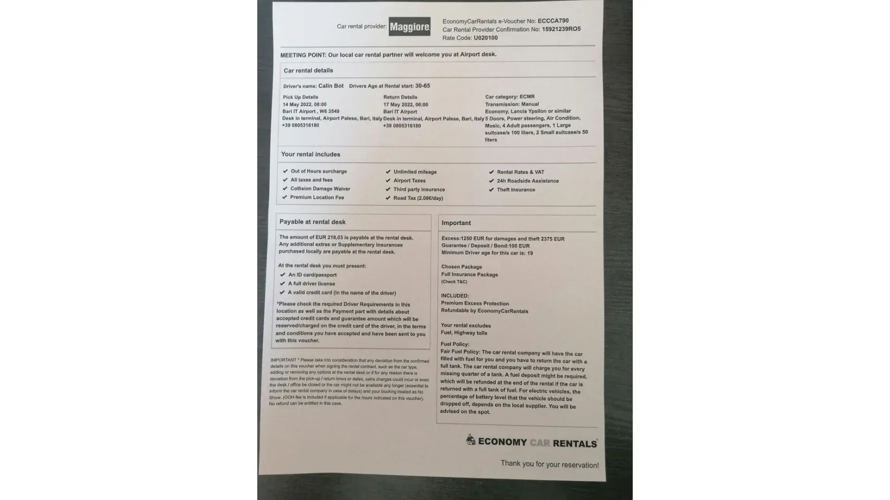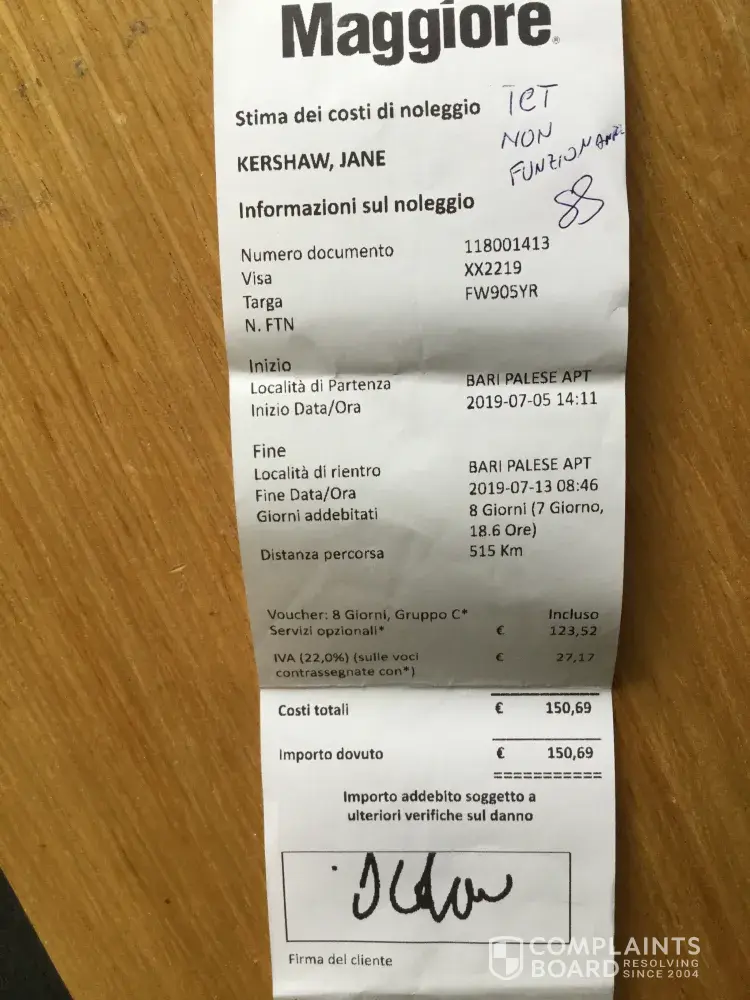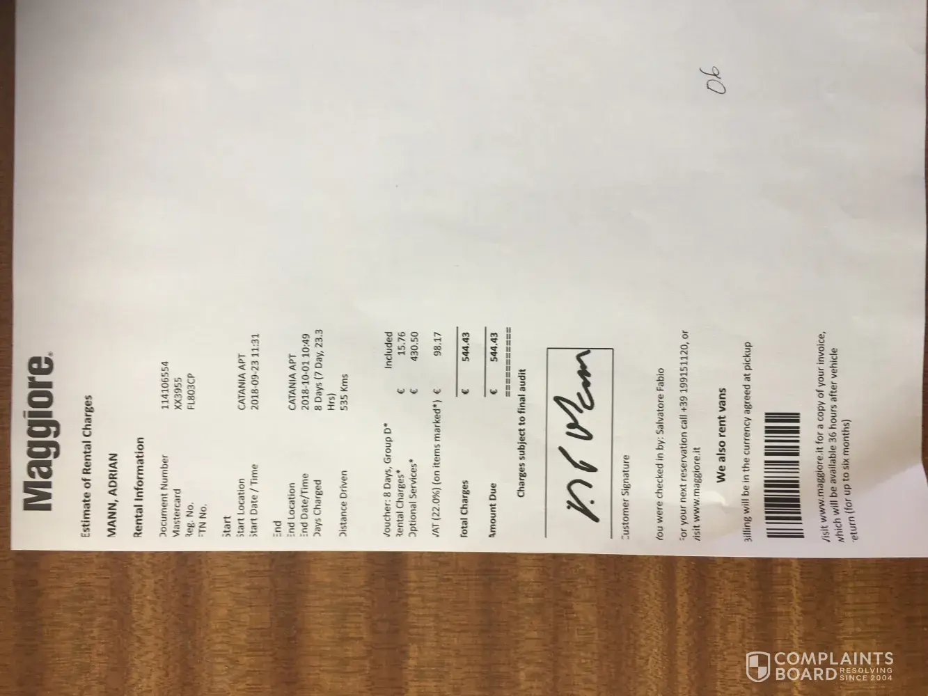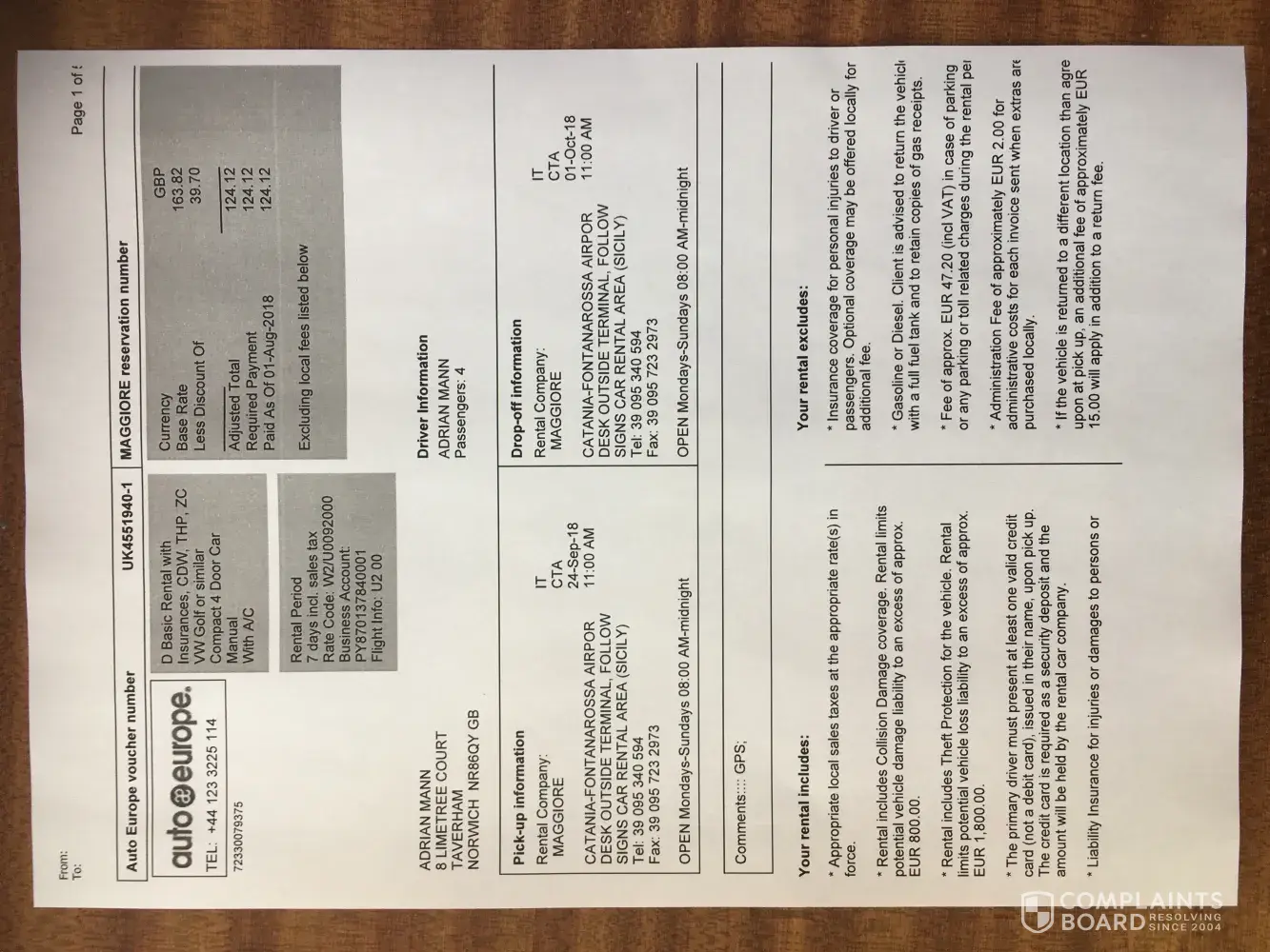 I put my trust in VIP Car rentals to sort this enquiry with Maggiore, they were the booking agent, so I believed it was their responsibility to assist me with this query.