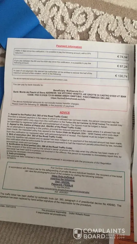 Should you wish to dispute the penalty or have any further queries regarding the infringement, please contact the issuing authority directly as they will be in a position to assist you further.