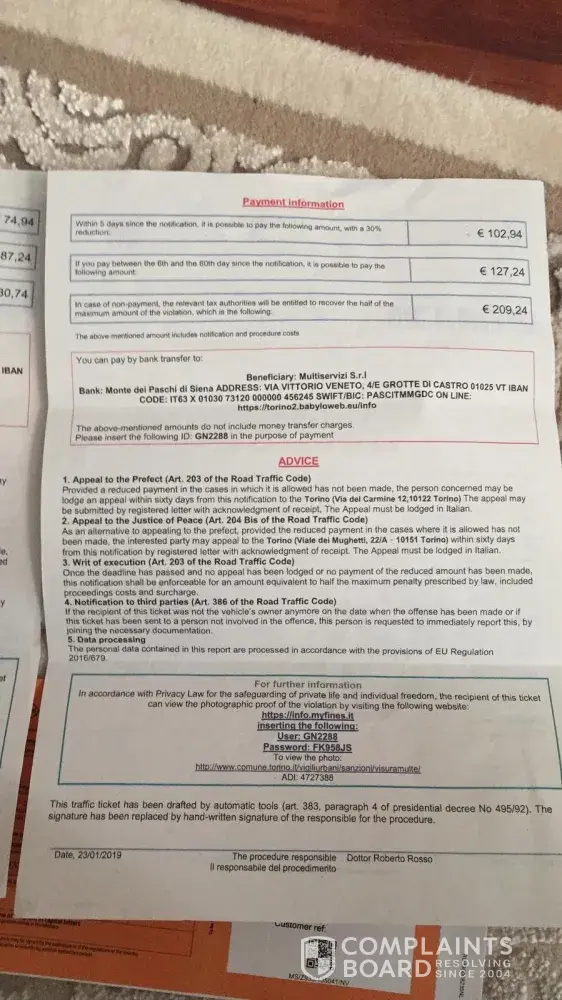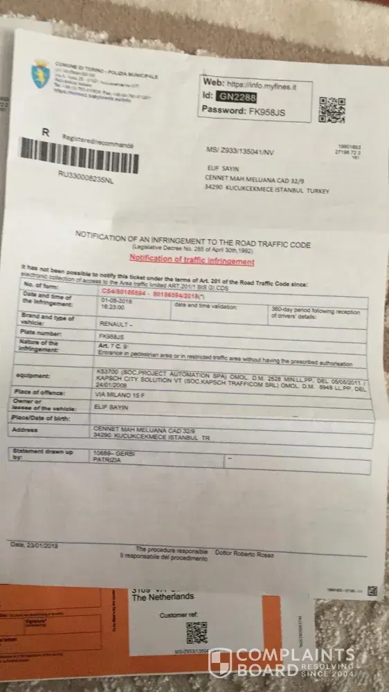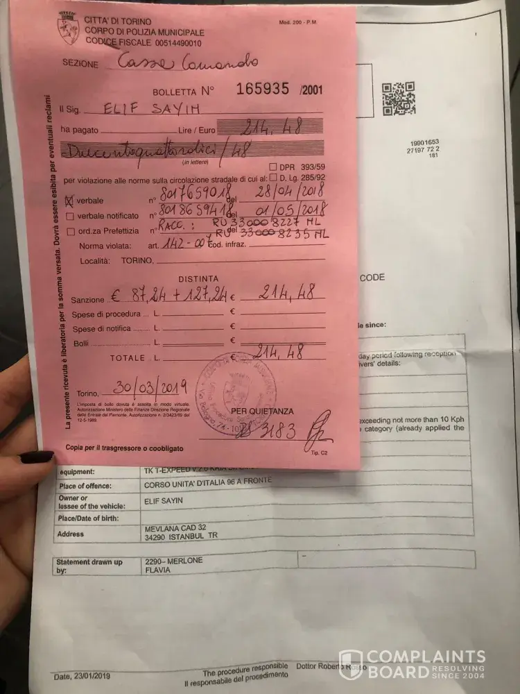 Dear Sir / Madam, You sent me traffic penalty last year and I paid it to traffic station at Turin but on 14 Jan 2020 your company withdrew approximately 125 euro from my credit card without my permission.You can find the receipt that I paid the penalty. My reservation number: [protected] Pick up: Milan Malpensa Airport 28.April 2018 Drop off: Milan Malpensa Airport 01.May.2018 Could you please correct your false? Best Regards